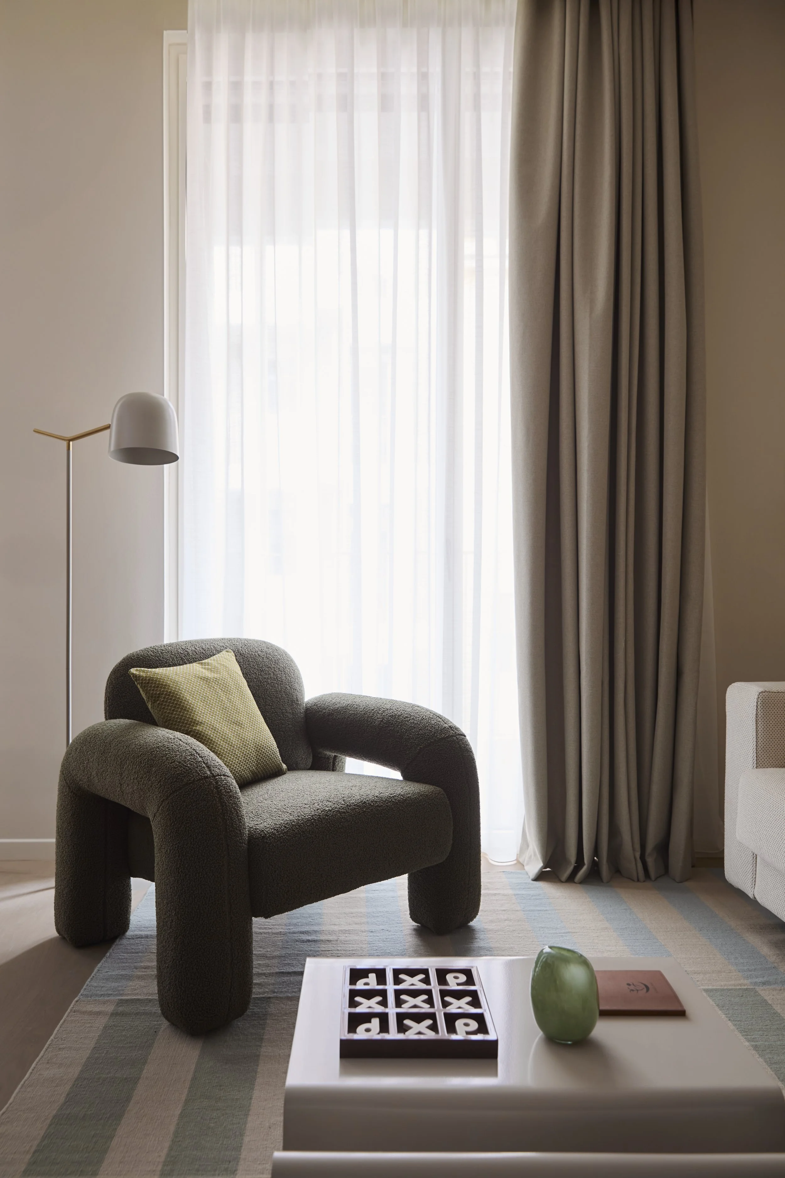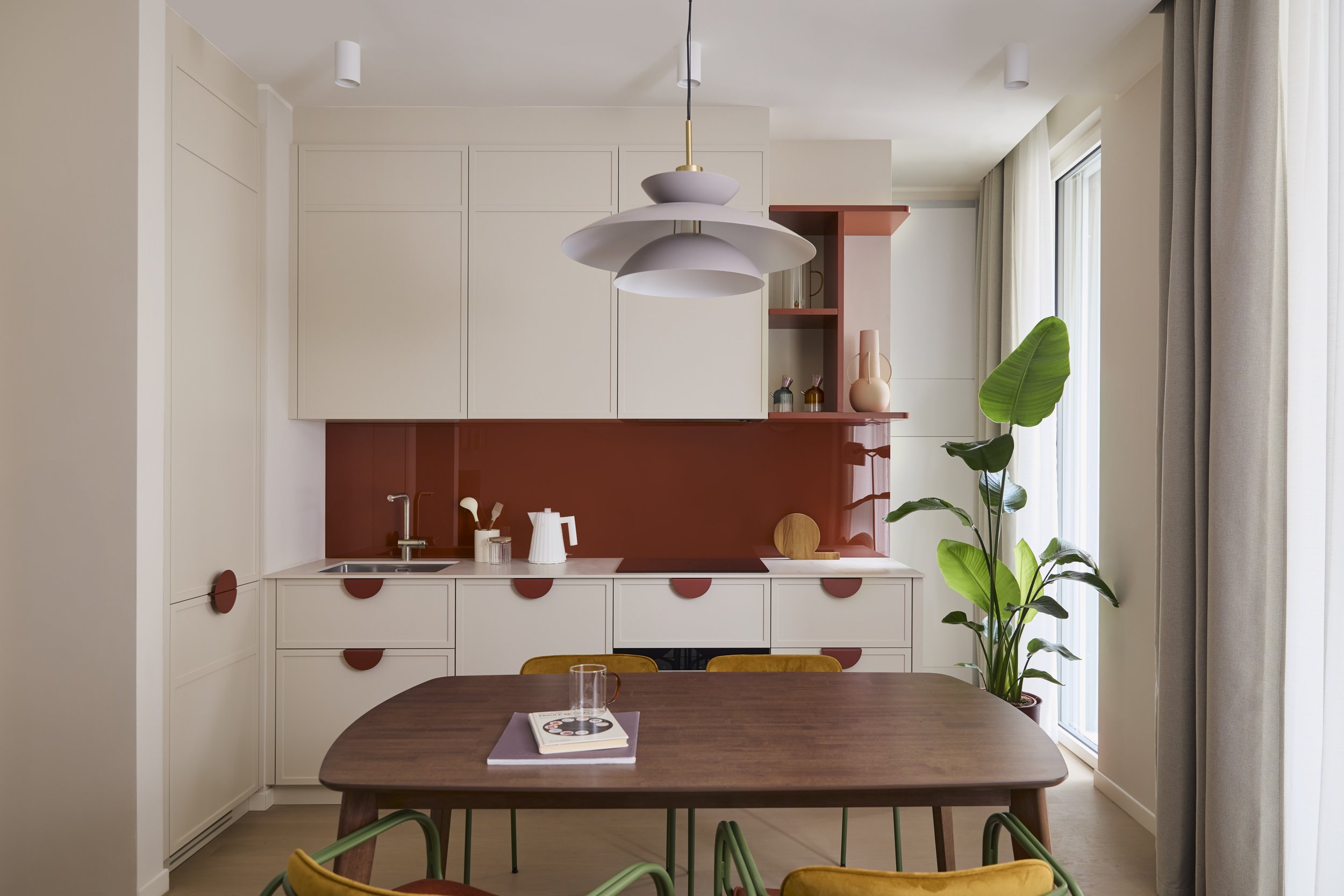L’intervento nasce con l’obiettivo di ottimizzare gli spazi e valorizzare ogni metro quadrato attraverso soluzioni su misura, arredi integrati e una progettazione attenta alla funzionalità quotidiana. Il colore diventa l’elemento guida del progetto, utilizzato come filo conduttore tra i diversi ambienti della casa. Una palette cromatica studiata permette di definire le funzioni degli spazi, accompagnare i percorsi e creare continuità visiva all’interno dell’appartamento.