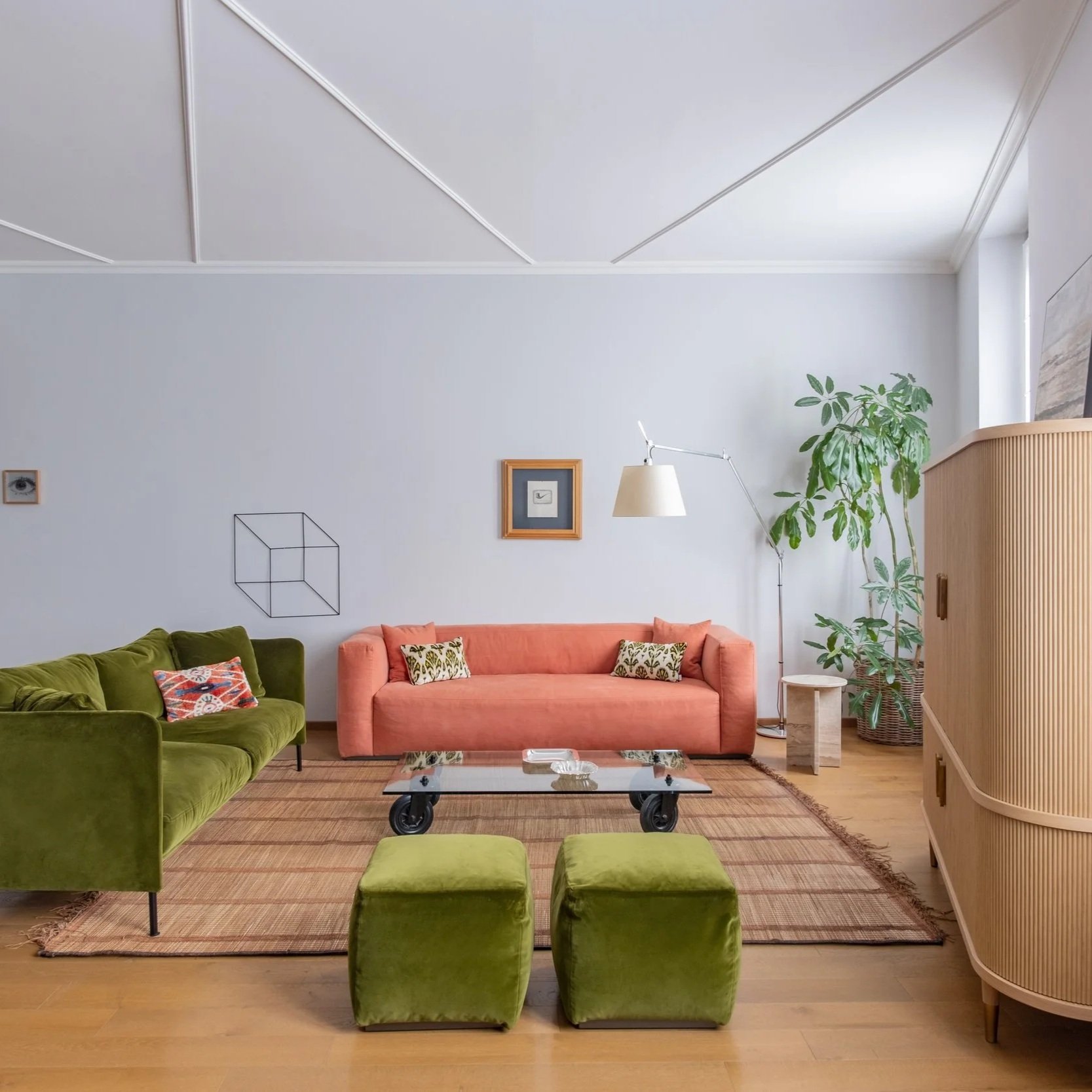 A questo fondale raffinato si sovrappone una selezione di arredi capace di restituire profondità e personalità agli spazi. Pezzi iconici come il divano De Padova e il tavolo Cassina, dialogano con arredi su misura e con inserti vintage, in un equilibrio che evita tanto il catalogo quanto la nostalgia. Il risultato è un appartamento che ha trovato il suo carattere: sofisticato, materico, riconoscibile.