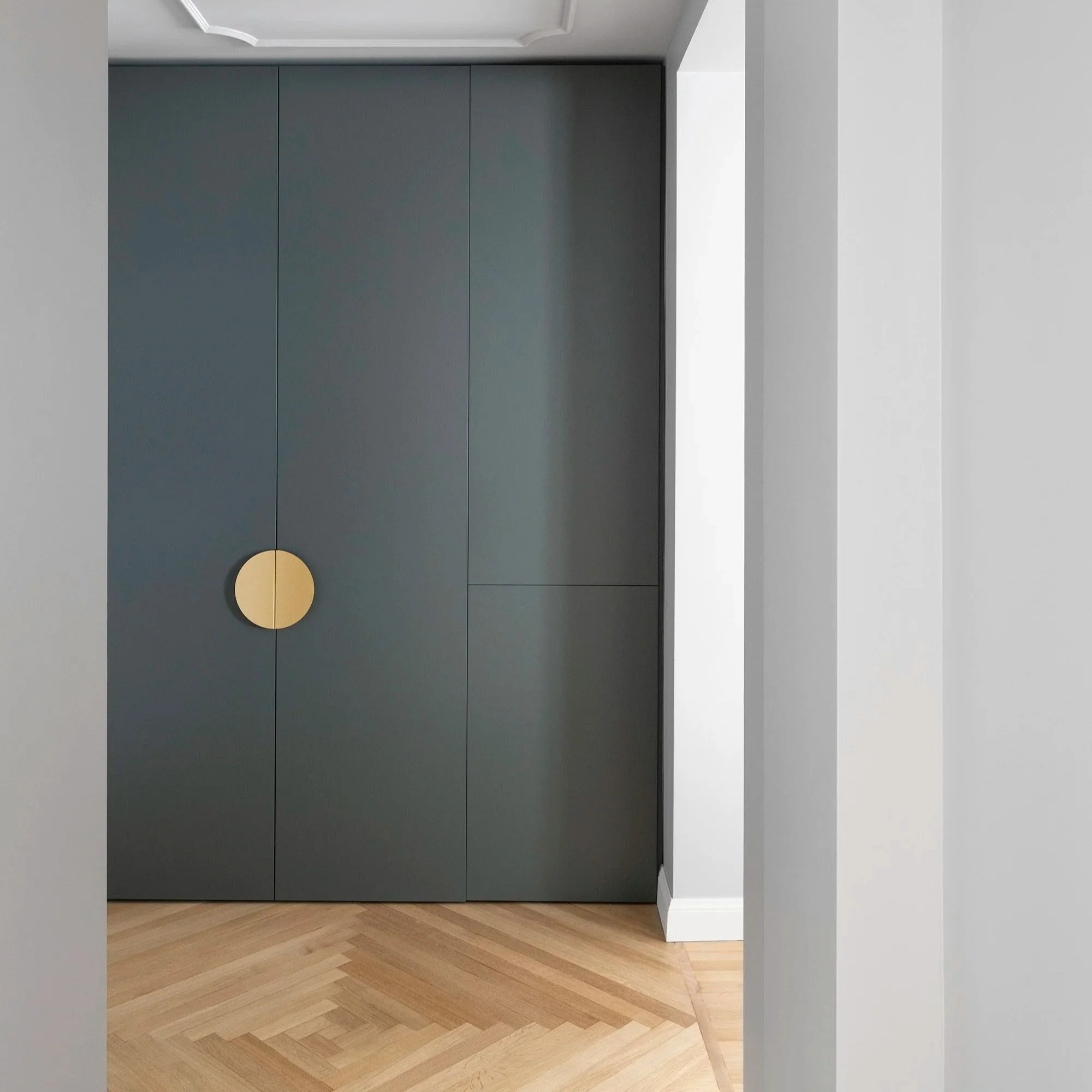 A tenere insieme le due anime dell'appartamento è anche una certa attenzione al dettaglio inaspettato. L'armadio della camera master, ad esempio, non è solo contenimento: cela al suo interno l'accesso alla cabina armadio e, da lì, al bagno privato, trasformando un elemento funzionale in una piccola sequenza spaziale con il piacere della scoperta. È in questi escamotage che il progetto rivela la sua cura per chi lo vive quotidianamente.