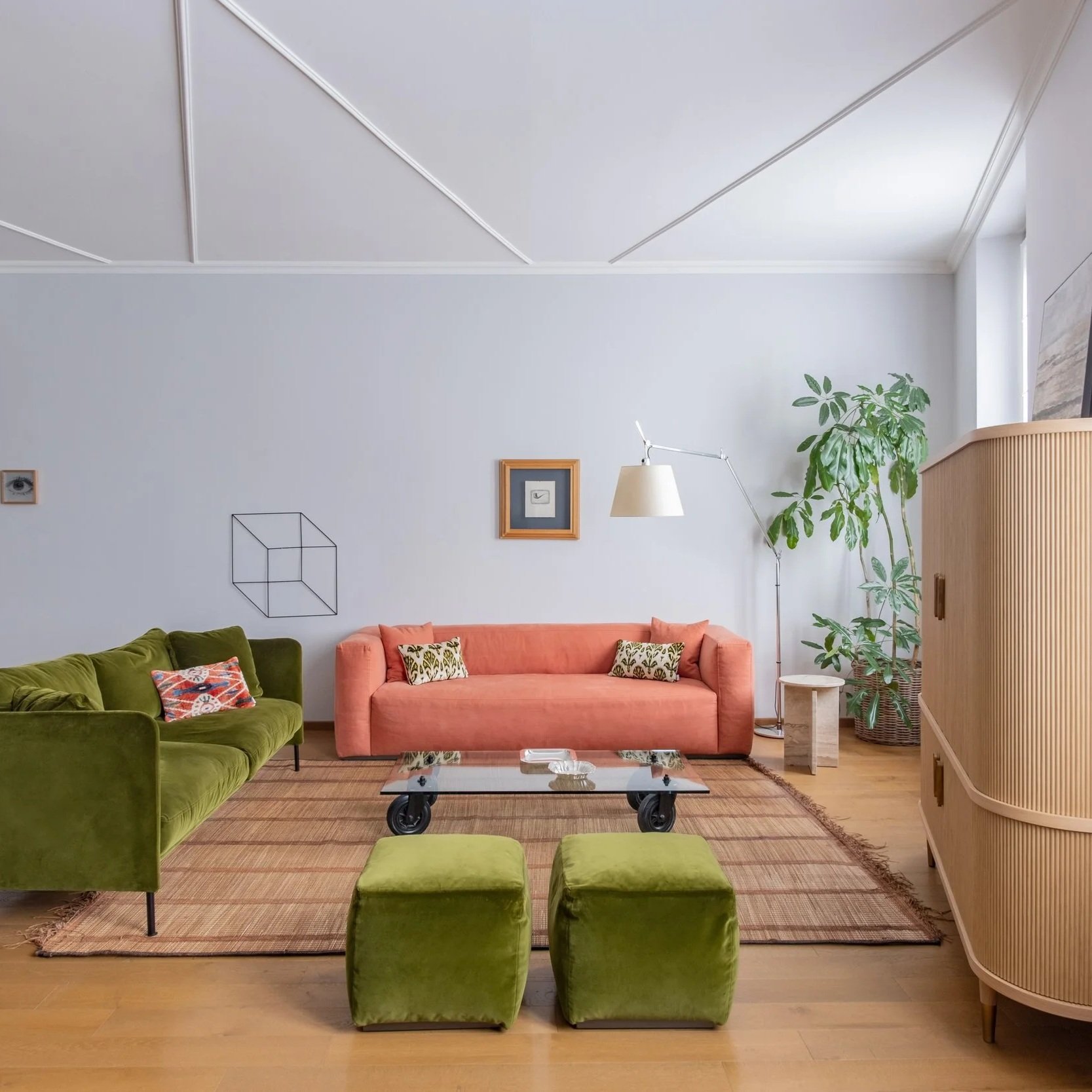 A questo fondale raffinato si sovrappone una selezione di arredi capace di restituire profondità e personalità agli spazi. Pezzi iconici come il divano De Padova e il tavolo Cassina, dialogano con arredi su misura e con inserti vintage, in un equilibrio che evita tanto il catalogo quanto la nostalgia. Il risultato è un appartamento che ha trovato il suo carattere: sofisticato, materico, riconoscibile.