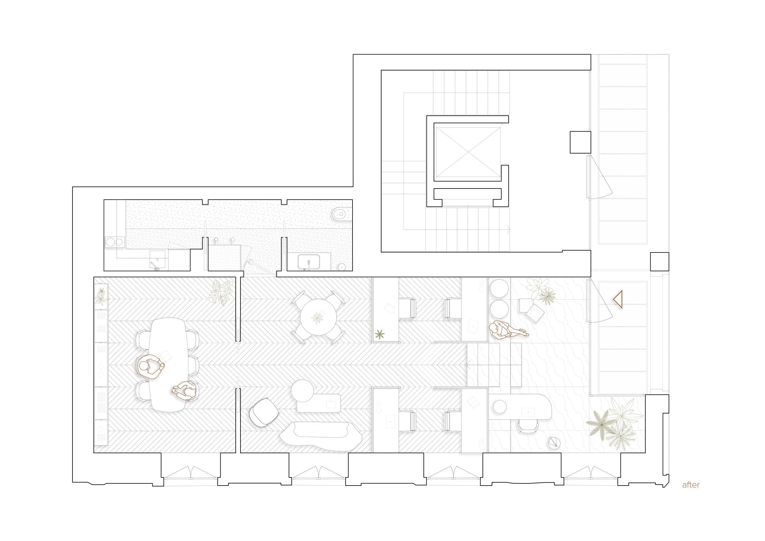 Uno spazio di rappresentanza nel cuore di Milano, progettato con il linguaggio e le finiture dell'appartamento borghese milanese. La fluidità degli ambienti permette configurazioni diverse, adattandosi con discrezione alle esigenze di chi lo vive e di chi lo visita.